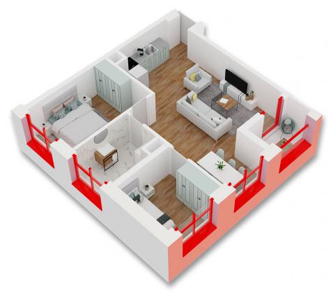 Siperfaqe 81.7 m2, kati i 2 me orientim jug-lindje.