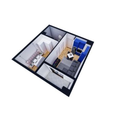 Hyrja per ne apartament behet ne zonen e dites (salloni dhe kendi i kuzhines), ne te djathte ndodhet tualeti dhe dhoma e gjumit e orientuar ne veri. Llozha e apartamentit aksesohet nga salloni.