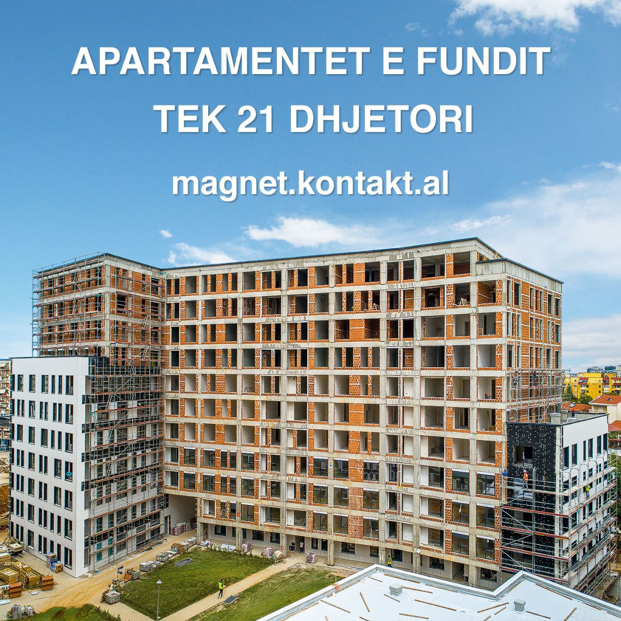 Shitet apartament 2+1 ne Tirane tek rezidenca Magnet  ne zonen e 21 Dhjetorit . Kati I 9 ne nje pallat 11 katesh me ashensor. I organizuar  ne 1 dhome ndenje + 2 dhome gjumi , 1 tualet , 1 ballkon. Apartamenti eshte ne proces ndertimi  I orientuar nga Lindja edhe  Veriu .