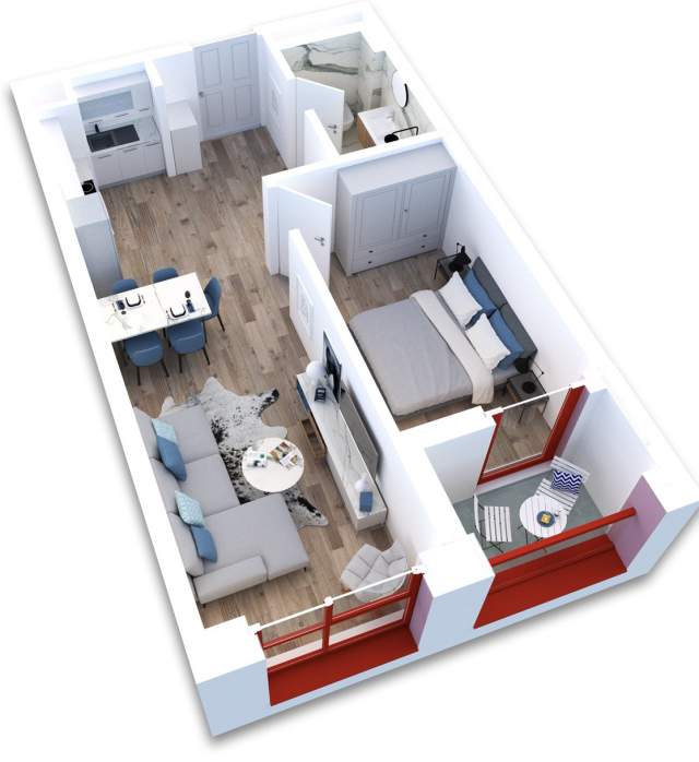 Apartament me siperfaqe 57.6 m2, orientim jug perendim, kati 6 dhe fushepamje te lire ne kompleksin Mangalem 21 te Ali Demi! Apartamenti ka nje planimetri te regullt kuadratike qe e ben 100% te shfrytezueshme. Apartamenti eshte i mireorganizuar ne 1 dhome gjumi me siperfaqe optimale e cila ka akses edhe ne llozhen e apartamentit, tualeti ne te majte te hyrjes kryesore, me tej vijon kendi i gatimit dhe dhoma e ndenjes ne te djathte. Apartamenti eshte i mirendricuar gjate gjithe dites dhe ndodhet ne nje kompleks rezidencial i cili ofron te gjitha kushtet per nje jetese te qete e komode.