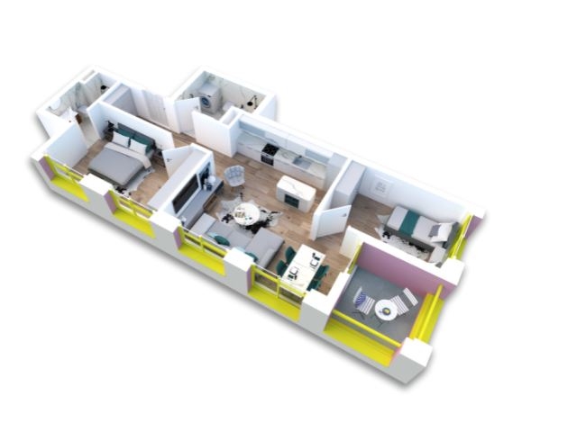 Apartament 2+1 me siperfaqe 89.2 m2, orientim jug perendim ne