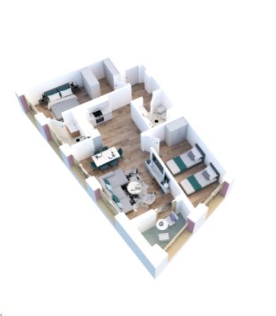 Apartament 2+1 me siperfaqe 89.2 m2, orientim jug perendim ne