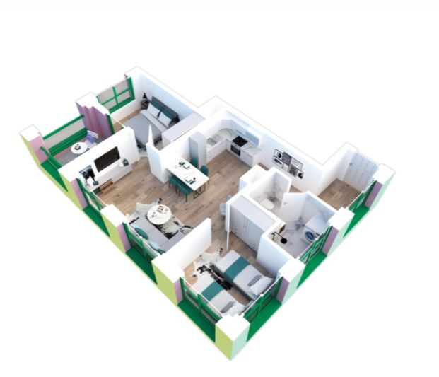 Apartament 2+1 me siperfaqe 89.2 m2, orientim jug perendim ne