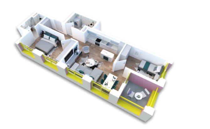 Apartament 2+1 me siperfaqe 89.2 m2, orientim jug perendim ne