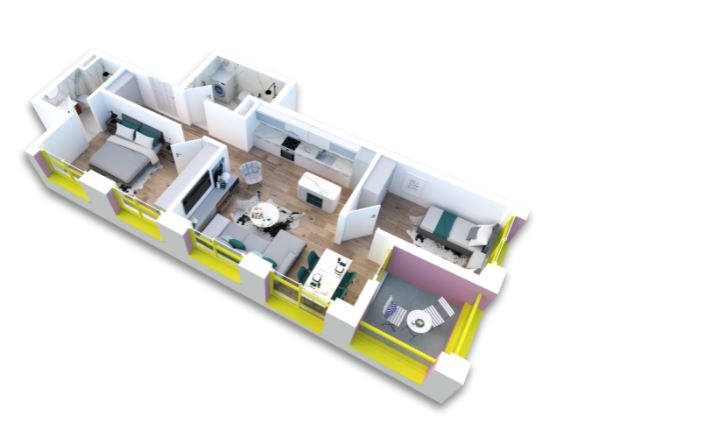 Apartament 2+1 me siperfaqe 89.2 m2, orientim jug perendim ne