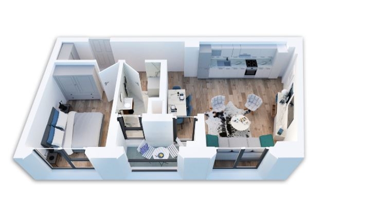 Apartament 1+1 me siperfaqe 58.5 m2, kati 6, orientim jug ne