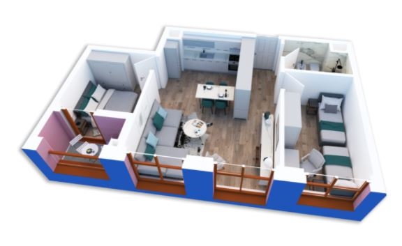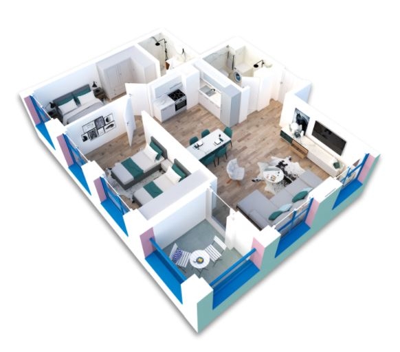 Apartament 2+1 me siperfaqe 78 m2, orientim jug ne