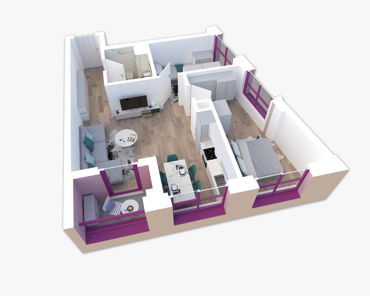 Apartamenti ka siperfaqe 72.1 m2, ka orientim veri-jug-lindje dhe ndodhet ne katin e