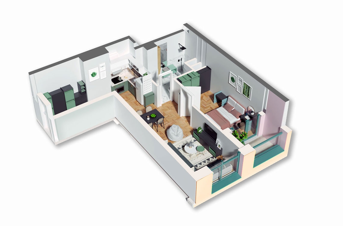 Apartamenti organizohet ne 1 sallon, 1 dhome, 1 tualet dhe 1 ballkon.