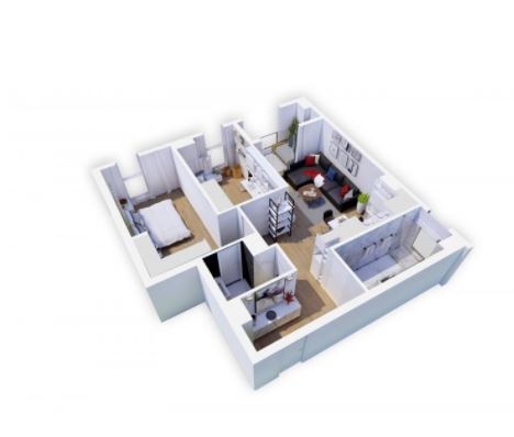 Apartament 1+1 me siperfaqe 53 m2, kati 3, orientim perendim ne kompleksin