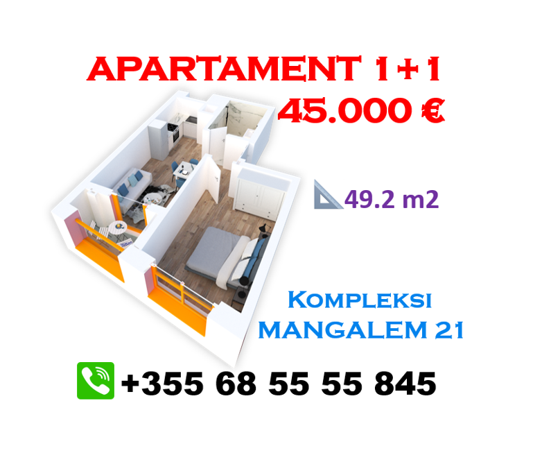 Okazion, Shitet Apartament 1+1 në kompleksin Mangalem21 te Ali, 45000 Euro