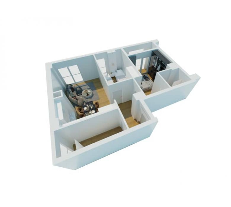 Apartamenti ne shitje ka siperfaqe 63.1 m2 dhe orientim Jug