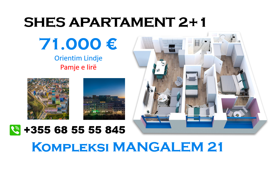 Shes apartament 2+1 , 69000 Euro te Ali Demi, Kompleksi Mangalem21.