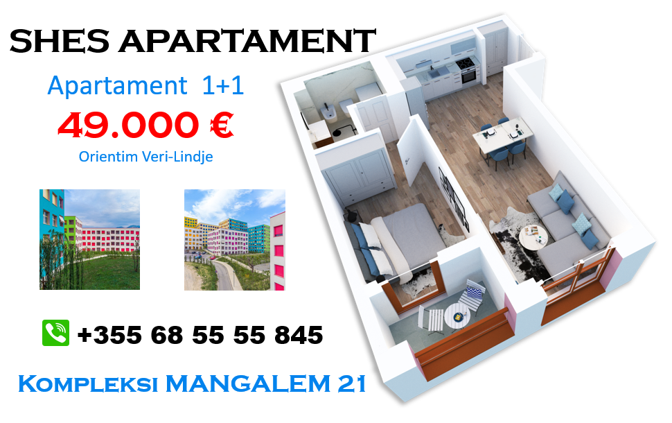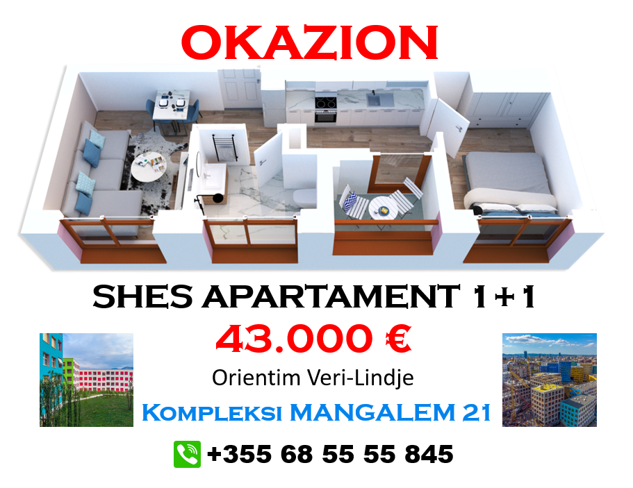 Shitet Apartament 1+1 në kompleksin Mangalem21 te Ali me cmim 43000 euro