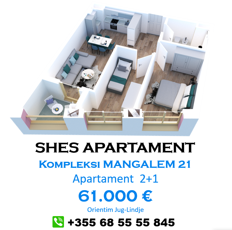 Shes apartament 2+1 me pamje te lire te kompleksi Mangalem 21!