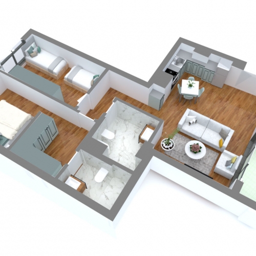 Per nje komoditet dhe ngrohtesi apartamenti eshte i pajisur me sistemin e kondicionimit multisplit dhe eshte i shtruar me parket zvicerian C3. Tualetet jane te hidroizoluara dhe kane pajisjet hidrosanitare inkaso.