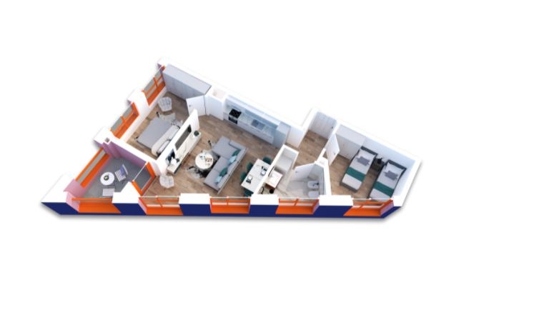 Apartament 2+1 me siperfaqe 79.9 m2, orientim jug lindje ne