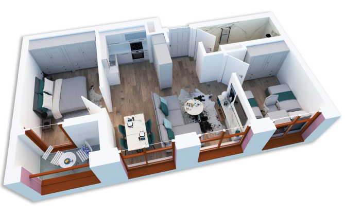 Apartament 2+1 me siperfaqe 73.2 m2, orientim lindje ne kompleksin