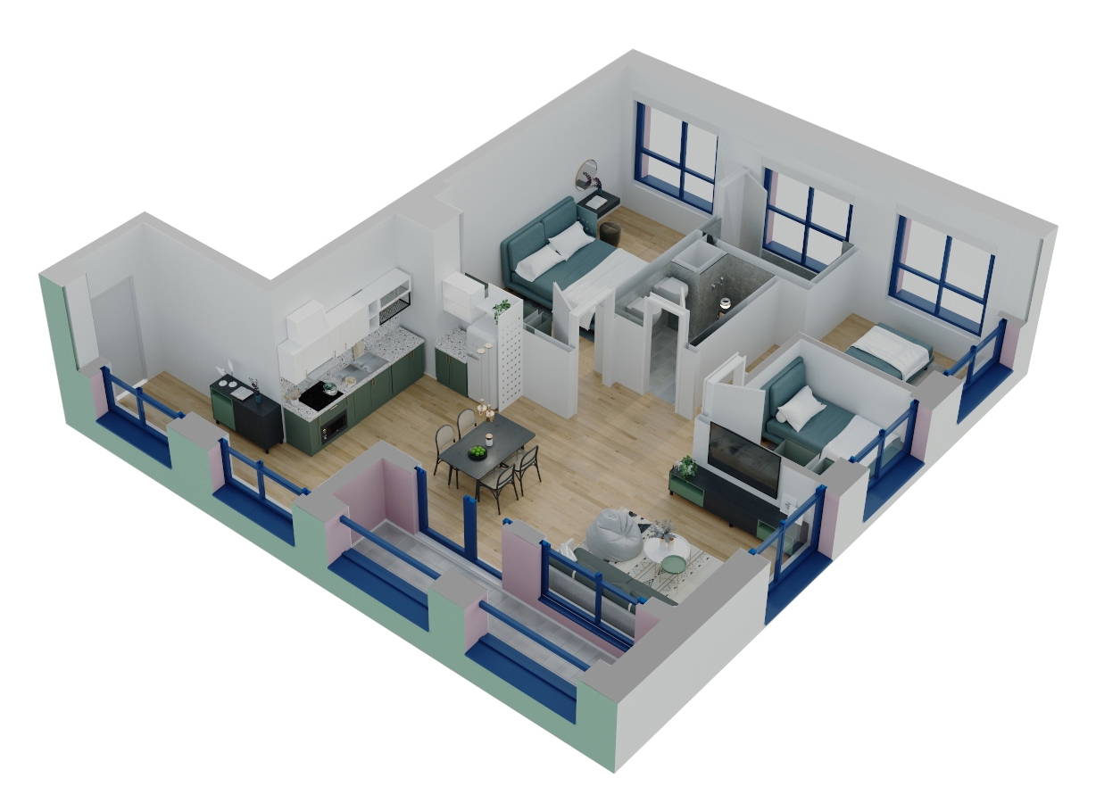 Apartament 2+1, me siperfaqe 78.3 m2, me orientim veri-lindje.