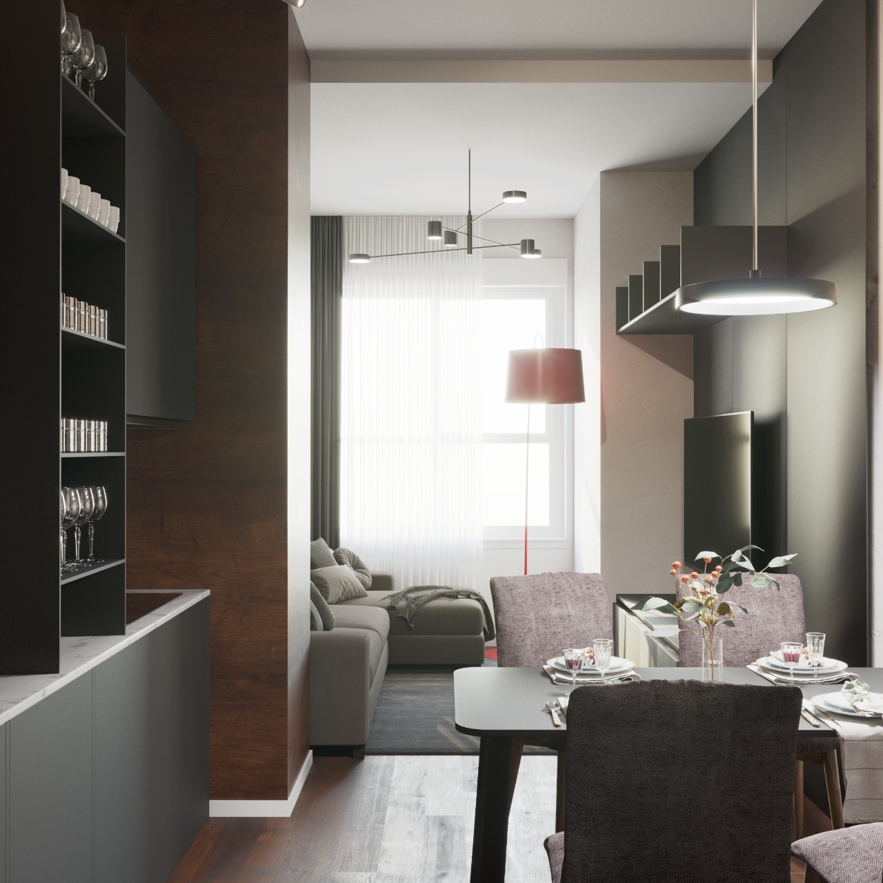 Apartamenti eshte pjese e residences Mangalem21. Ndodhet ne katin e 3 te nje pallati te ri, me ashensor dhe te mireadministruar.