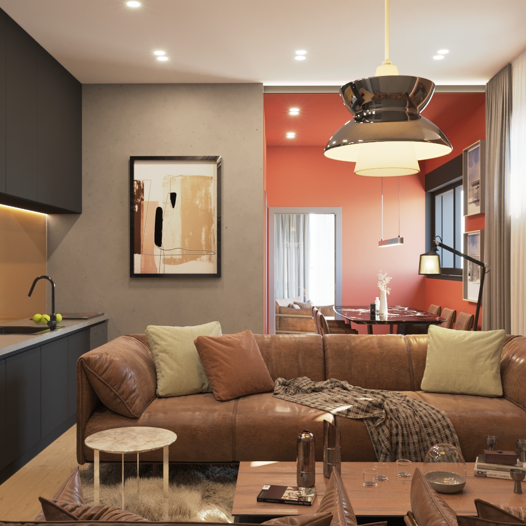 Hyrja realizohet nepermjet nje korridori per ne zonen e dites, nga ku ne te djathte mund te aksesohet tualeti dhe ne te majte dhoma e gjumit. Dhoma e gjumit diellëzohet nga llozha me orientim veri-perendim. Dhoma e ndejtjes ka dritare me orientim veri dhe ka akses ne llozhe.