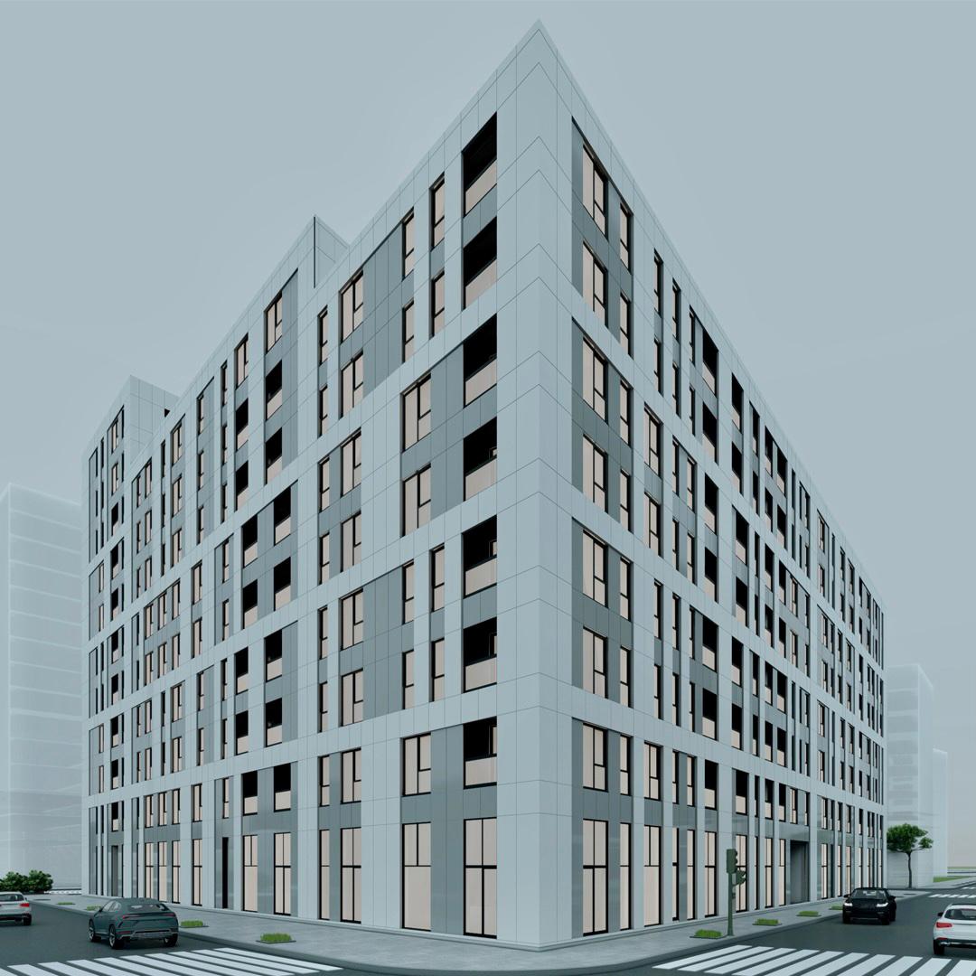 Apartament 2+1, me sipërfaqe 99.7 m2, me një orientim të dyanshëm veri-lindje dhe jug-perëndim. Hyrja realizohet drejtpërdrejt në zonën e ditës, në të majtë mund të aksesohet lavanderia. Flukset e lëvizjes përcaktojnë në zonën e ditës këndin e gatimit dhe ngrënies dhe ambientin e ndejtjes që ka akses dhe diellëzohet nga llozha me orientim veri-lindje, drejt oborrit të brendshëm. Me anë të një korridori të vogël bëhet shpërndarja për në dhomat e gjumit dhe tualetin. Dhoma e fëmijëve ka dritare me orientim nga jug-perëndimi. Dhoma matrimoniale ka po të njëjtin orientim dhe përfshin dhe një kënd garderobe dhe tualet të dedikuar.
