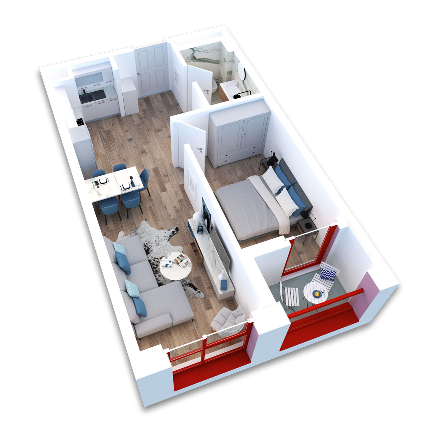 Apartament me siperfaqe 57.6 m2, orientim jug perendim, kati 6 dhe fushepamje te lire ne kompleksin Mangalem21 te Ali Demi! Apartamenti ka nje planimetri te regullt kuadratike qe e ben 100% te shfrytezueshme. Apartamenti eshte i mireorganizuar ne 1 dhome gjumi me siperfaqe optimale e cila ka akses edhe ne llozhen e apartamentit, tualeti ne te majte te hyrjes kryesore, me tej vijon kendi i gatimit dhe dhoma e ndenjes ne te djathte. Apartamenti eshte i mirendricuar gjate gjithe dites dhe ndodhet ne nje kompleks rezidencial i cili ofron te gjitha kushtet per nje jetese te qete e komode.