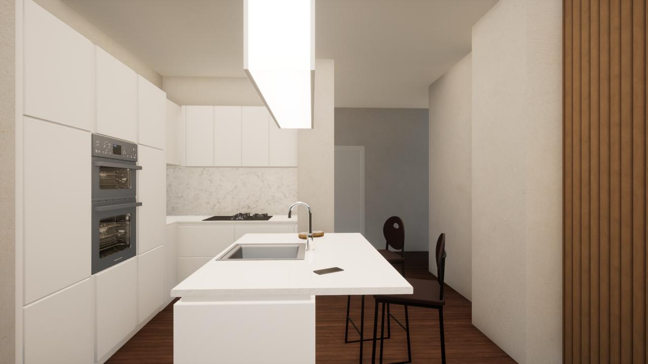 Apartamenti ka nje planimetri te regullt kuadratike qe e ben 100% te shfrytezueshme. Apartamenti eshte i mireorganizuar ne dhomen e ndenjes me siperfaqe optimale, tualetin e dites, kendin i gatimit dhe dhomen e gjumit e cila ka akses ne llozhen e apartamentit.