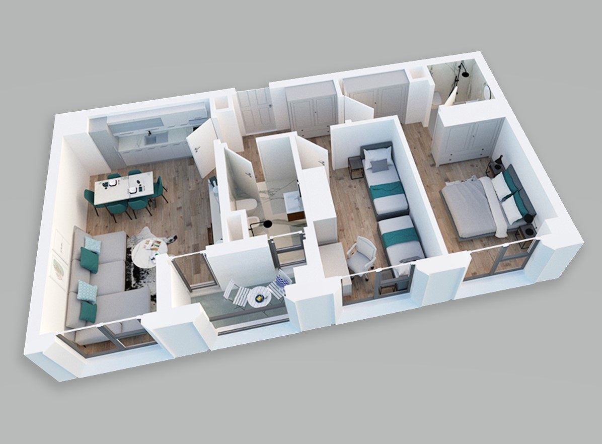 Shes apartament 2+1 me siperfaqe 92.5 m2. Apartamenti ndodhet ne katin e 4 te nje pallati te ri me 2 ashensore dhe me shkalle me dritare. Apartamenti eshte me orientim jug-perendim dhe organizohet ne dhome ndenje, 2 dhoma gjumi, 2 tualete nga te cilet njeri eshte me dritare. Objekti eshte me fasade te ventiluar dhe me zeizolim. Akses ne cdo ane. Prenotim me vetem 30% te vleres. Financim deri ne 70% te vleres se apartamentit.