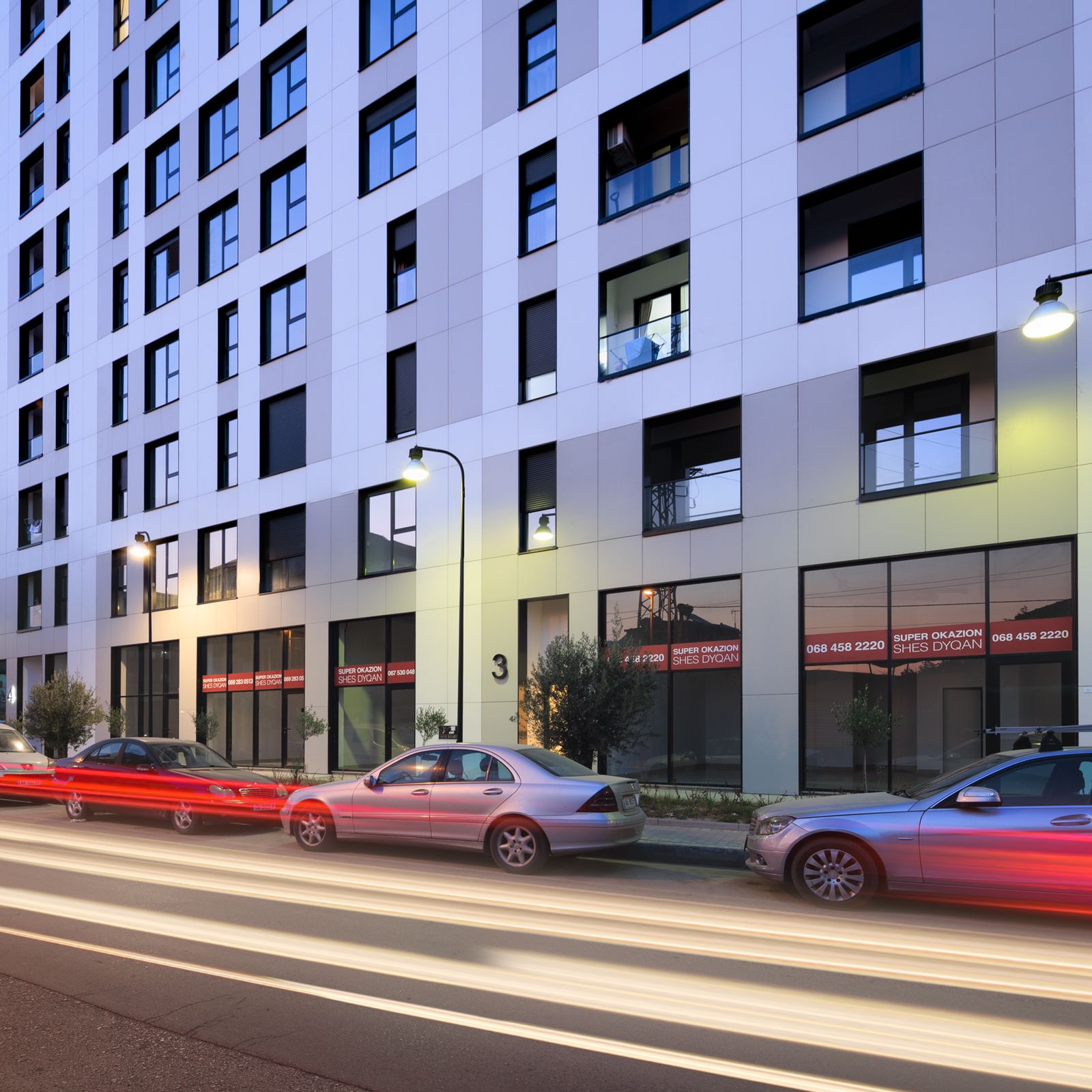Objekt me Fasade te Ventiluar, Termoizolim, Izolim Akustik, Dritare Alumin Termik, Rezistence Sizmike deri ne 9 balle, Hidroizolim Tarraca Alwitra, Ashensor Schindler, Hidrosanitare Inkaso, Oborre te gjelbëruara.