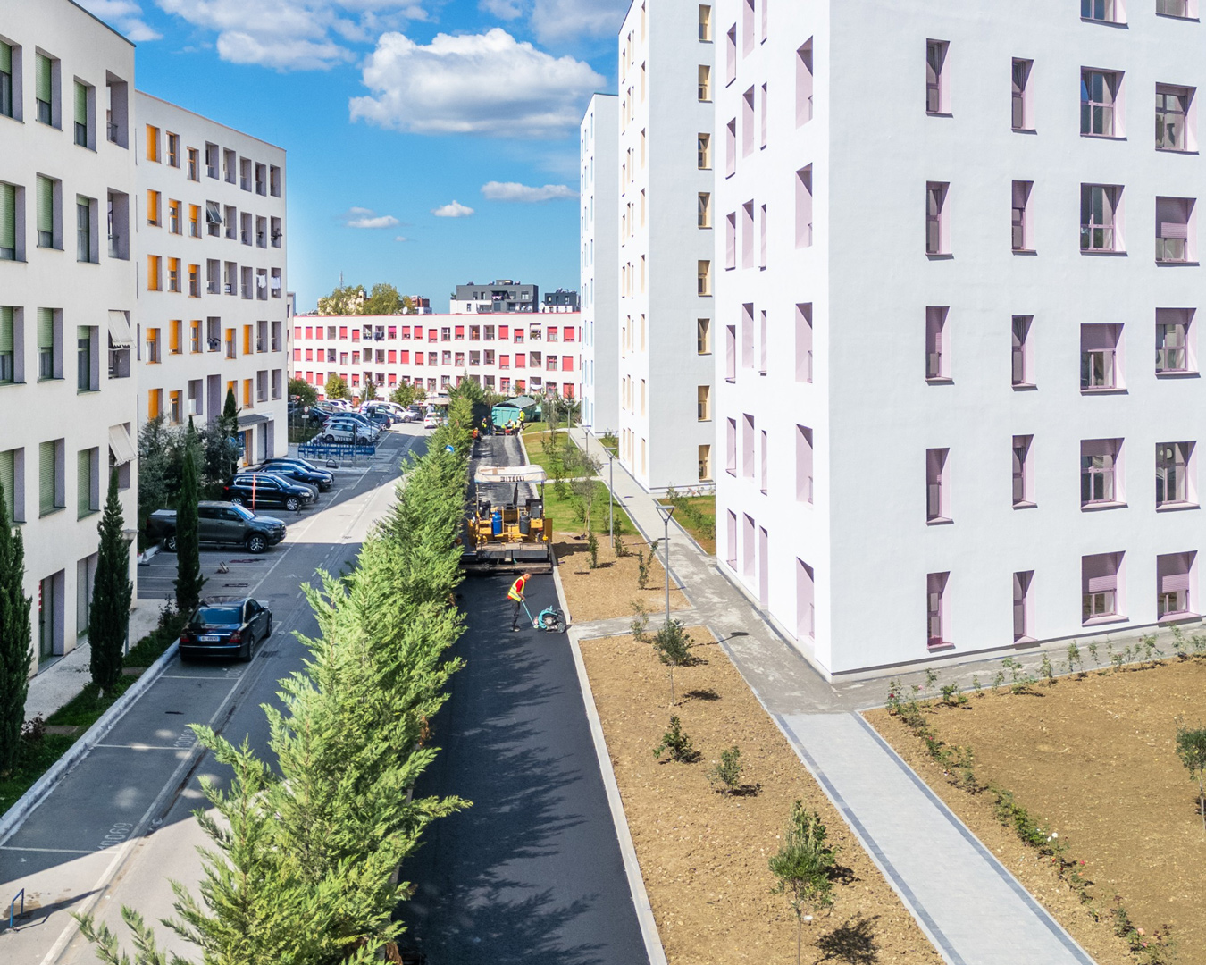 Një hap më pranë përfundimit të një rezidence që sjell standarde të reja jetese! Punimet e asfaltimit janë duke u zhvilluar me kujdes të lartë për të garantuar cilësi, funksionalitet dhe estetikë në çdo detaj.