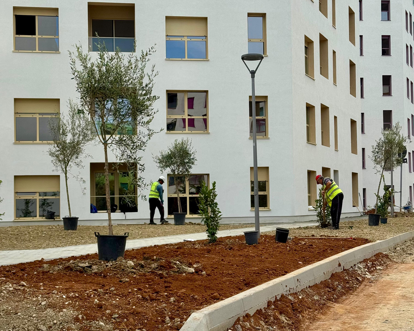 Në Rezidencën Kadiu u mbollën pemë të reja Ky aktivitet jo vetëm që përmirëson estetikën e kompleksit, por edhe krijon një ambient më të shëndetshëm dhe të këndshëm për banorët.