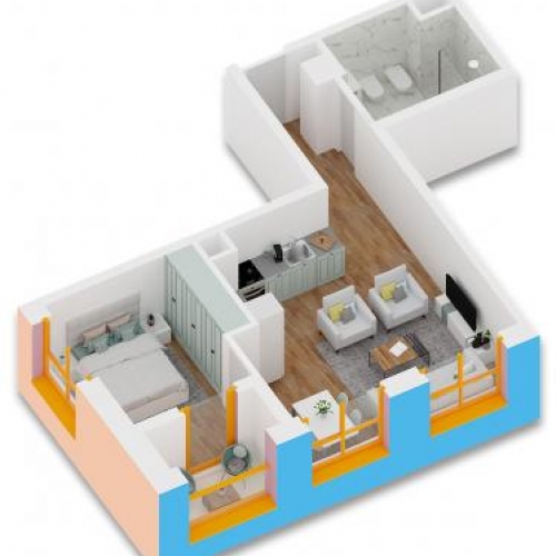 Apartament ne shitje tek kompleksi Mangalem 21 , Ali Demi. 1+1 me siperfaqe 54.9 ne katin e pare me...