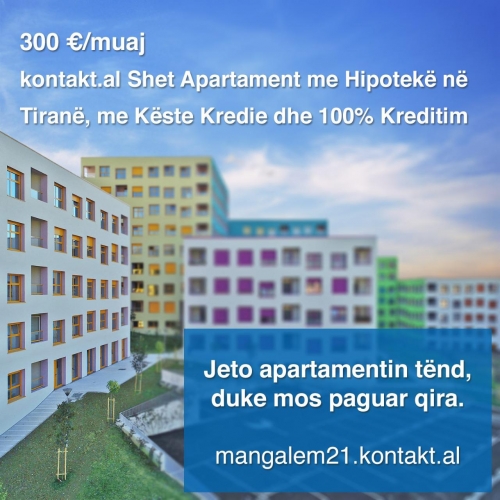 Mëso më shumëRezidenca Mangalem 21, Ali Demi Tirane. Apartamente 1+1 ,2+1,3+1 me hipoteke. Me cmim duke filluar...