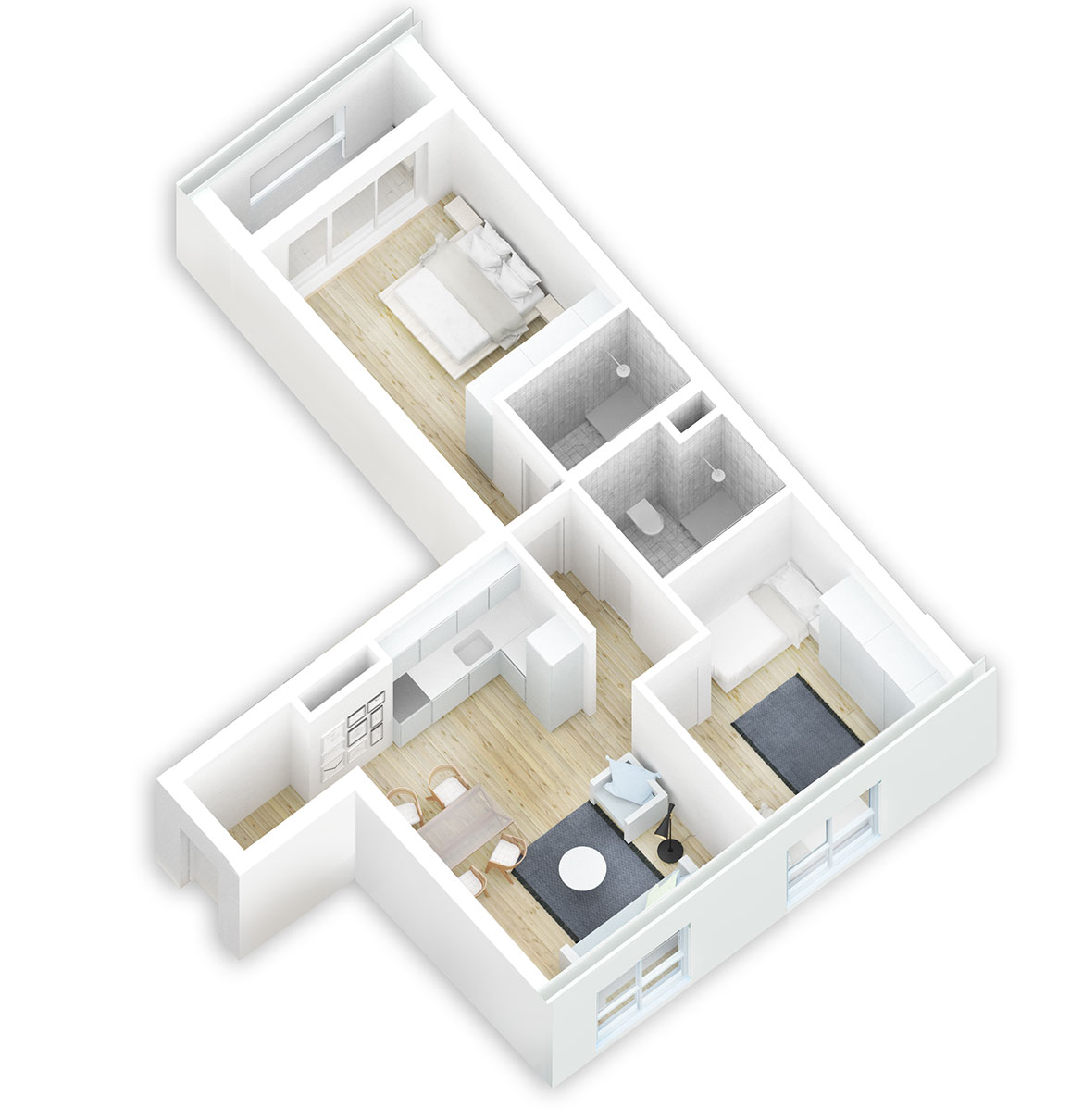 Siperfaqe 94.6 m2, me një orientim të dyanshëm veri-perëndim dhe jug-lindje.