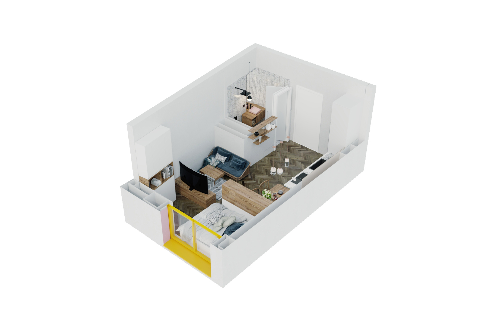 Apartament me siperfaqe 31.2 m2, orientim lindje ne kompleksin Mangalem 21, kati 2. Apartamenti edhe pse me siperfaqe te vogel eshte i mireorganizuar dhe ka nje siperfaqe kuadratike qe ben 100% te shfrytezushme. Sapo hyn ne apartament ne te majte eshte kendi i gatimit ndersa ne te djathte eshte i pozicionuar tualeti. Me tej eshte e pozicionuar zona e fjetjes dsi me e vecuar. Apartamenti eshte i mirendricuar gjate gjithe dites dhe ndodhet ne nje kompleks rezidencial prej 41 pallatesh i cili ofron te gjitha kushtet per nje jetese te qete e komode.
