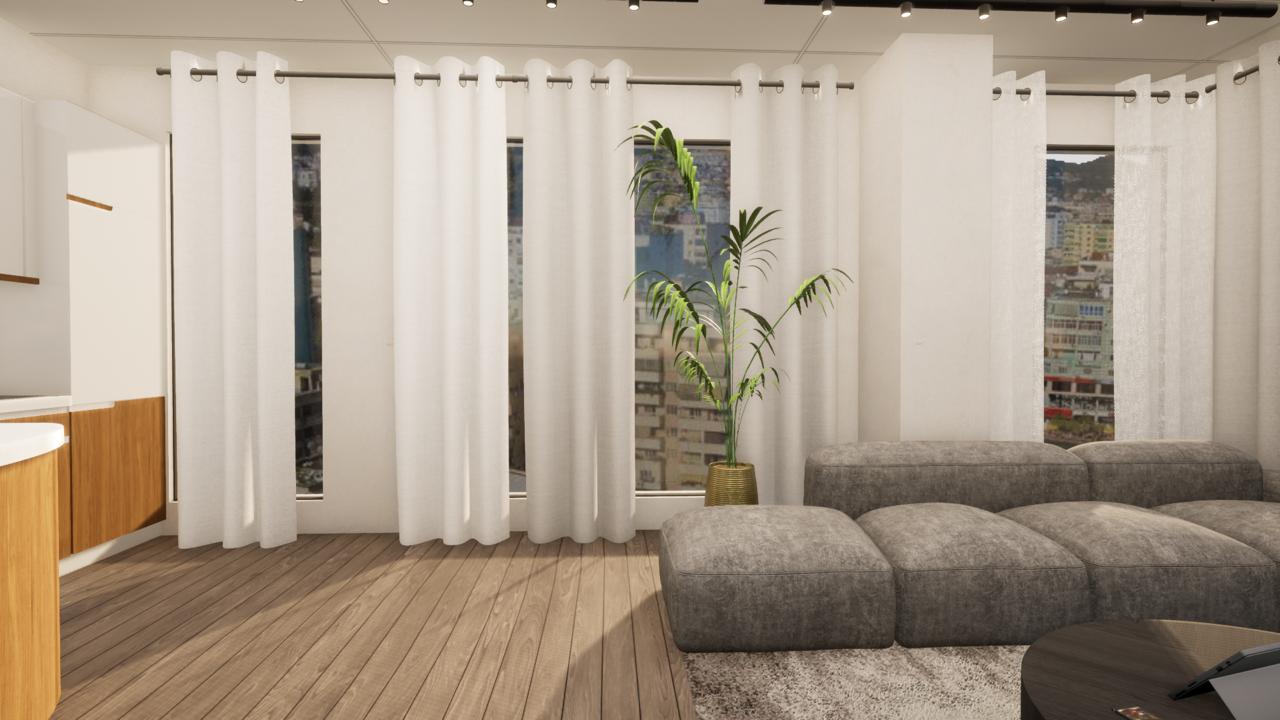 Apartamenti ndodhet ne katin e pare te nje objekti ne ndertim. Punimet jane cilesore, nder to: fasade e ventiluar, hidroizolim, izolim akustik dhe sistem qendror ngrohje dhe ftohje. Ka siperfaqe totale prej 75.6 m2 dhe siperfaqe te brendshme prej 65.6 m2 te organizuar ne sallon dhe kuzhine, dy dhoma gjumi, nje tualet dhe llozhe.