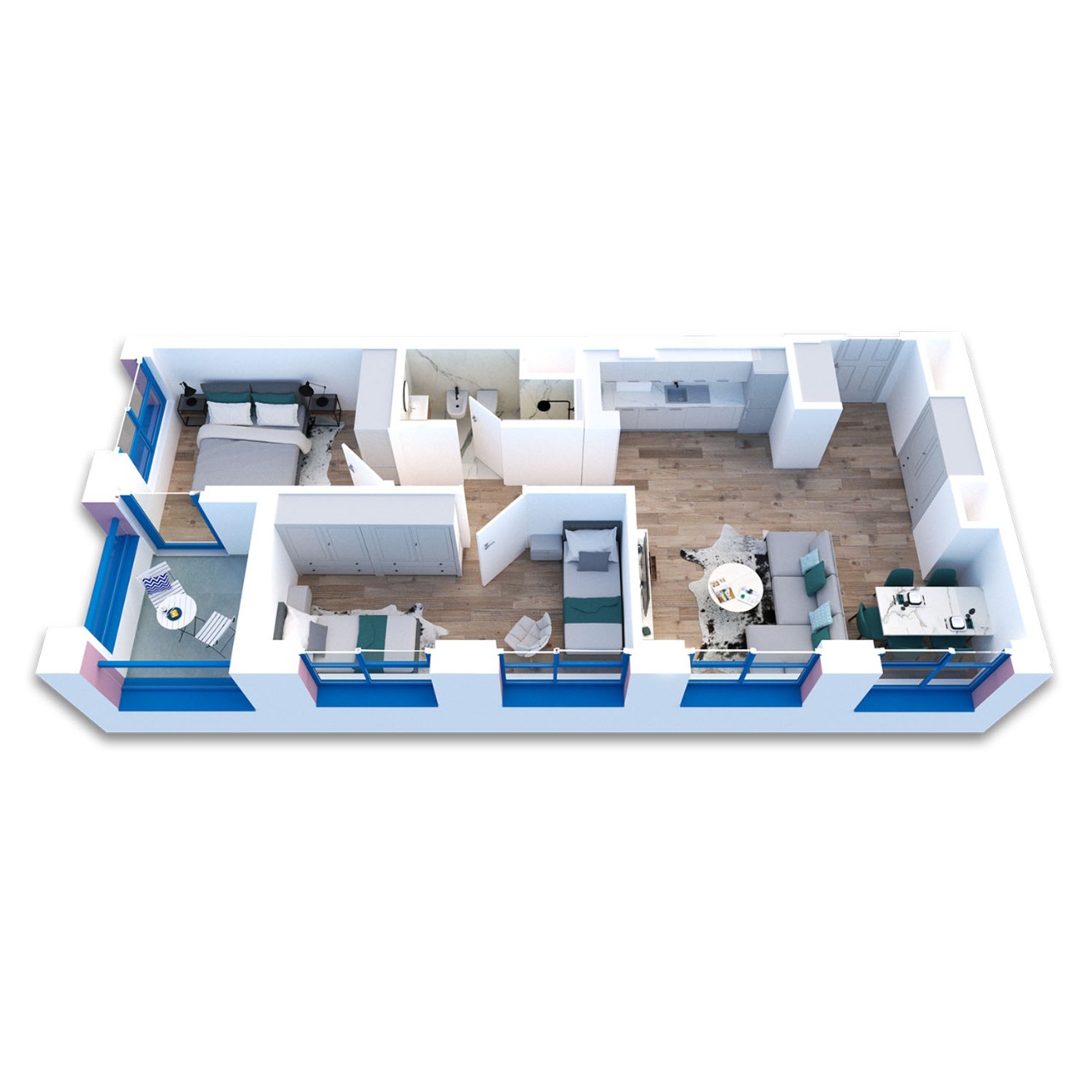 Kompleksi ne te cilin ndodhet apartamenti eshte ne total me 41 pallate dhe rendesi te vecante i kushtohet hapsirave te gjelberta!