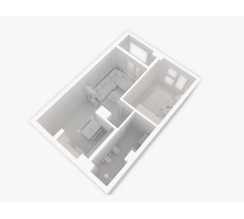 Apartamenti organizohet ne zonen e dites (sallon dhe kuzhine), tualeti kryesor, dhoma e gjumit dhe llozha.