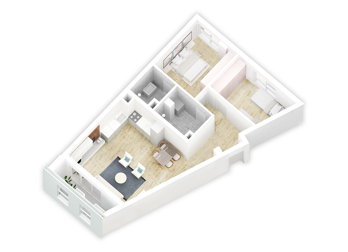 Shitet Apartament 2+1, me sipërfaqe 102 m2, me cmim okazion,me një orientim të dyanshëm veri-perëndim dhe jug-lindje. Hyrja realizohet me anë të një korridori, në të djathtë të të cilit aksesohen dhomat e gjumit dhe tualeti, ndërsa në të majtë dhoma e ndejtjes. Dhomat e gjumit kanë dritare me orientim veri-lindje. Dhoma matrimoniale përfshin dhe një tualet të dedikuar. Zona e ditës ka akses dhe diellëzohet nga llozha me orientim veri-lindje.