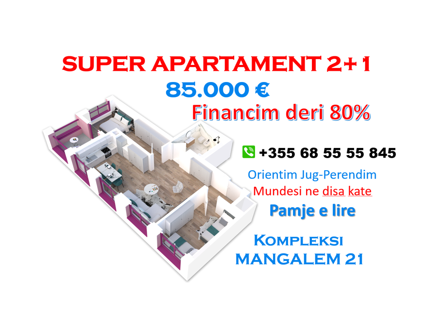 Shitet apartament 2+1 me pamje te lire te kompleksi Mangalem 21!