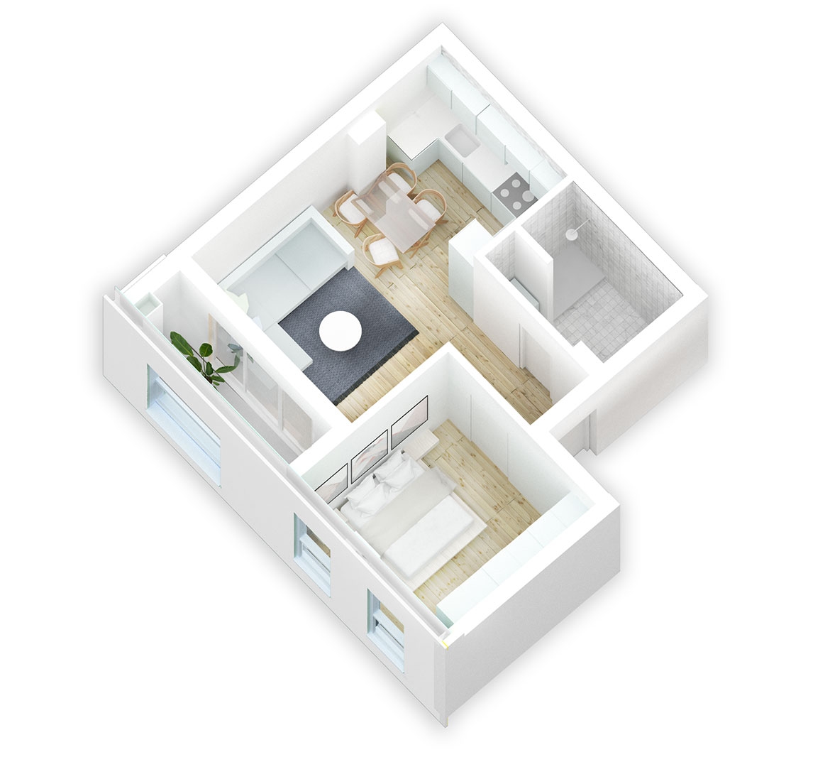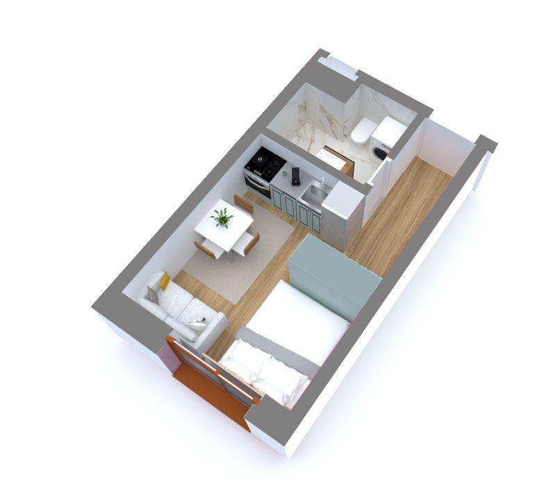 Apartament me siperfaqe 29.1 m2, orientm veri, kati 2 ne kompleksin Mangalem21, Ali Demi.