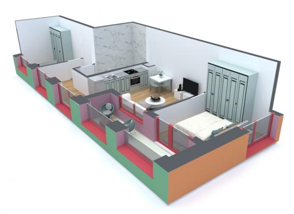 Apartament 1+1 me siperfaqe 63 m2 , ndodhet ne katin e 6 dhe me orientim Lindje.