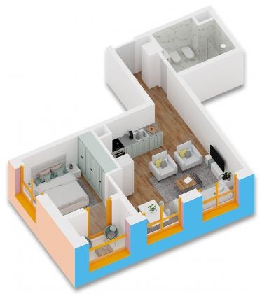 Siperfaqe 69.2 m2. kati i 6 me orientim jug-lindje