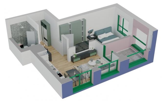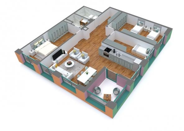 Apartament 3+1 me siperfaqe 155.2 m2 , kati 4 me orientim veri-jug-lindje-perendim.