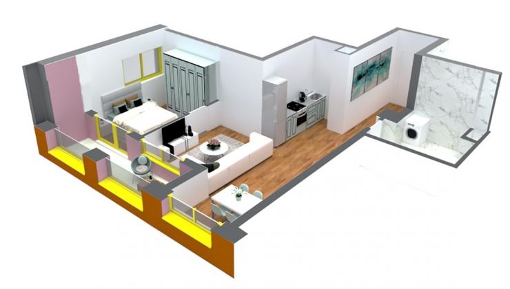 Siperfaqe 13.1 m2. kati i 9 me orientim jug-lindje