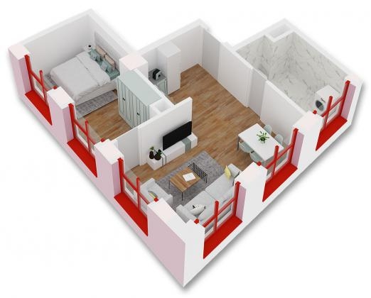 1+1 me siperfaqe 59.7 ne katin e shtate me orientim veri-perendim.