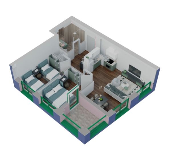 Apartament 2+1 me siperfaqe 89.2 m2, orientim jug perendim ne