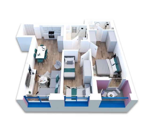 Apartament 2+1 me siperfaqe 89.2 m2, orientim jug perendim ne