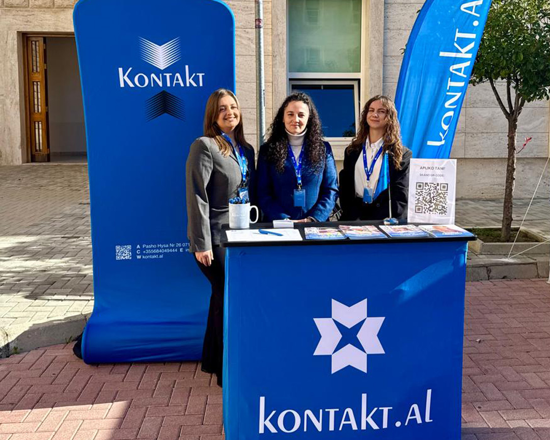 Kontakt participated in the Career Fair at the Polytechnic University of Tirana, where we were welcomed by dozens of young professionals. During the event, we presented opportunities for internships, job positions, and ongoing projects.